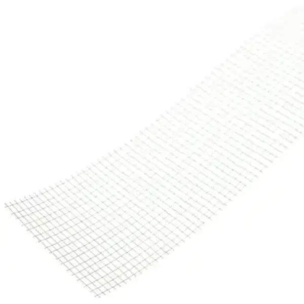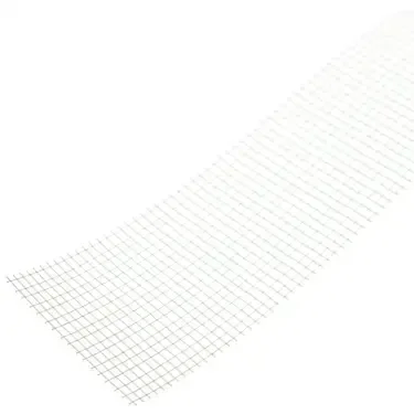 Wapeningsband van witte glasvezels met open mazen, eenzijdig klevend voor het wapenen van voegen bij wanden van gipsplaten met afgeschuinde kanten (AK).